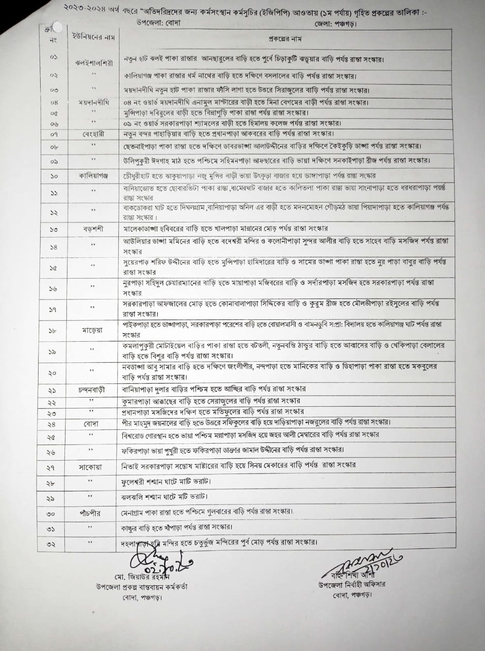 ২০২৪-২০২৫ অর্থ বছরে “ অতিদরিদ্রদের জন্য কর্ম সংস্থান কর্মসূচি (ইজিপিপি) ১ম পর্যায়ের প্রকল্পের তালিকা